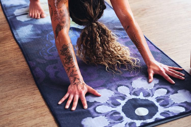 汗による滑り・ズレを解消したストレスフリーヨガラグ。